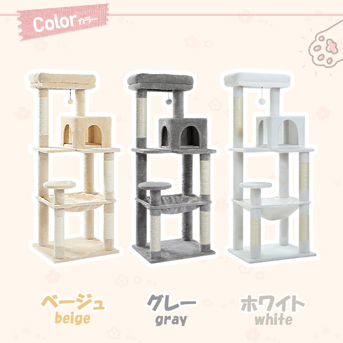 Nagaipet キャットタワー 猫タワー 大型猫 スリム 広いハンモック 爪とぎ おしゃれ 据え置きタイプ 遊び場 多頭飼い 運動不足解消 天然サイザル麻紐 登り降りしやすい 猫ハウス 省スペース 猫ランド AMT0110