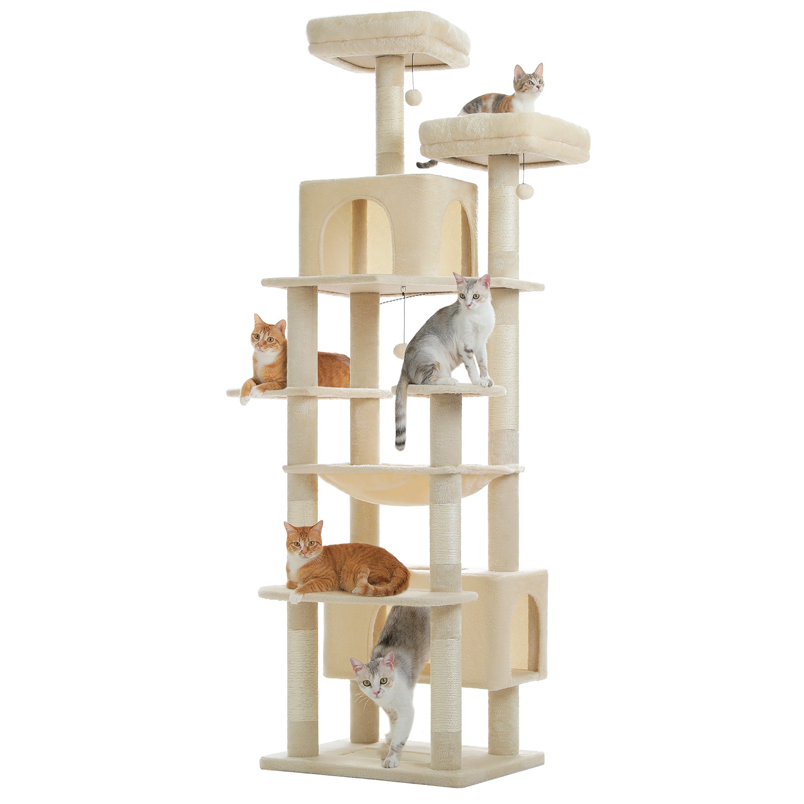 Nagaipet キャットタワー 猫タワー 大型猫用 夏 多頭飼い 丈夫 ハンモック 据え置き スリム ねこ ネコ 麻紐 爪とぎポール 猫のおもちゃ ポンポン 転倒防止ベルト付き 展望台 猫ベッド 運動不足解消