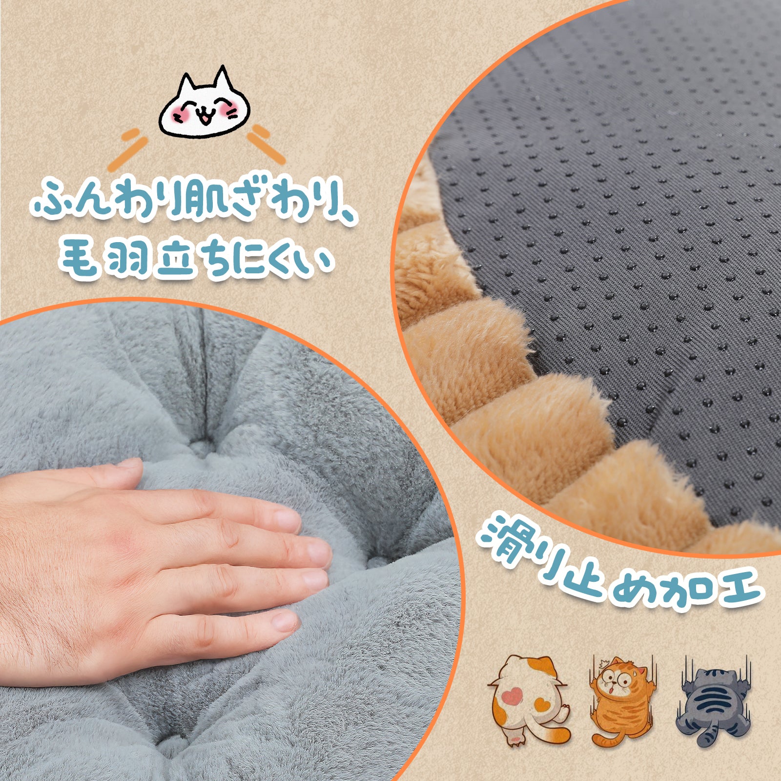 【両面仕様でオールシーズン快適】フランネル溝加工で通気性抜群!冷房の冷えすぎや床の冷たさをカットし、ひんやり快適な寝床に。ふかふか起毛生地で保温性抜群! 密着する暖かい肌触りで、愛するペットを優しく包み込み、冷えをシャットアウト。