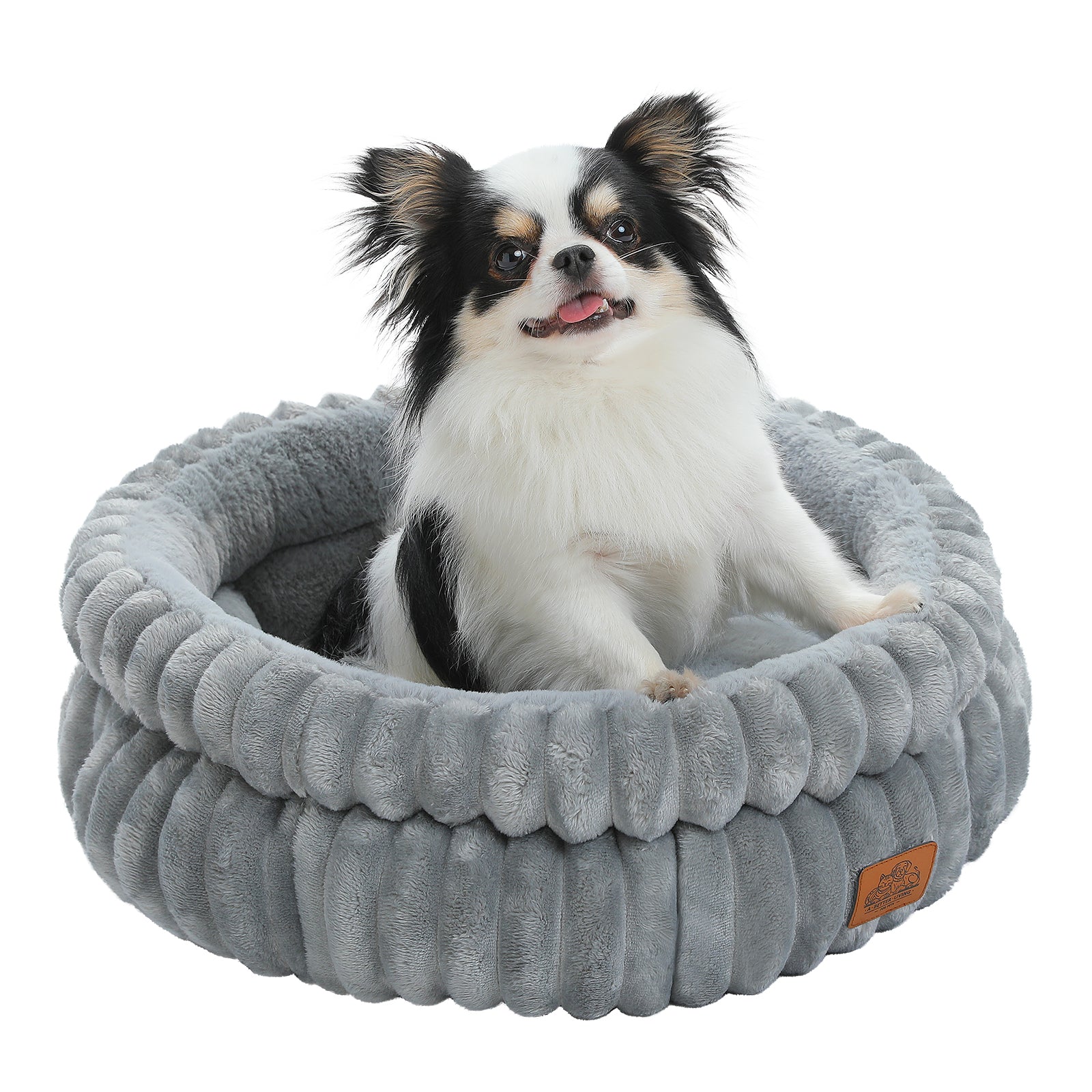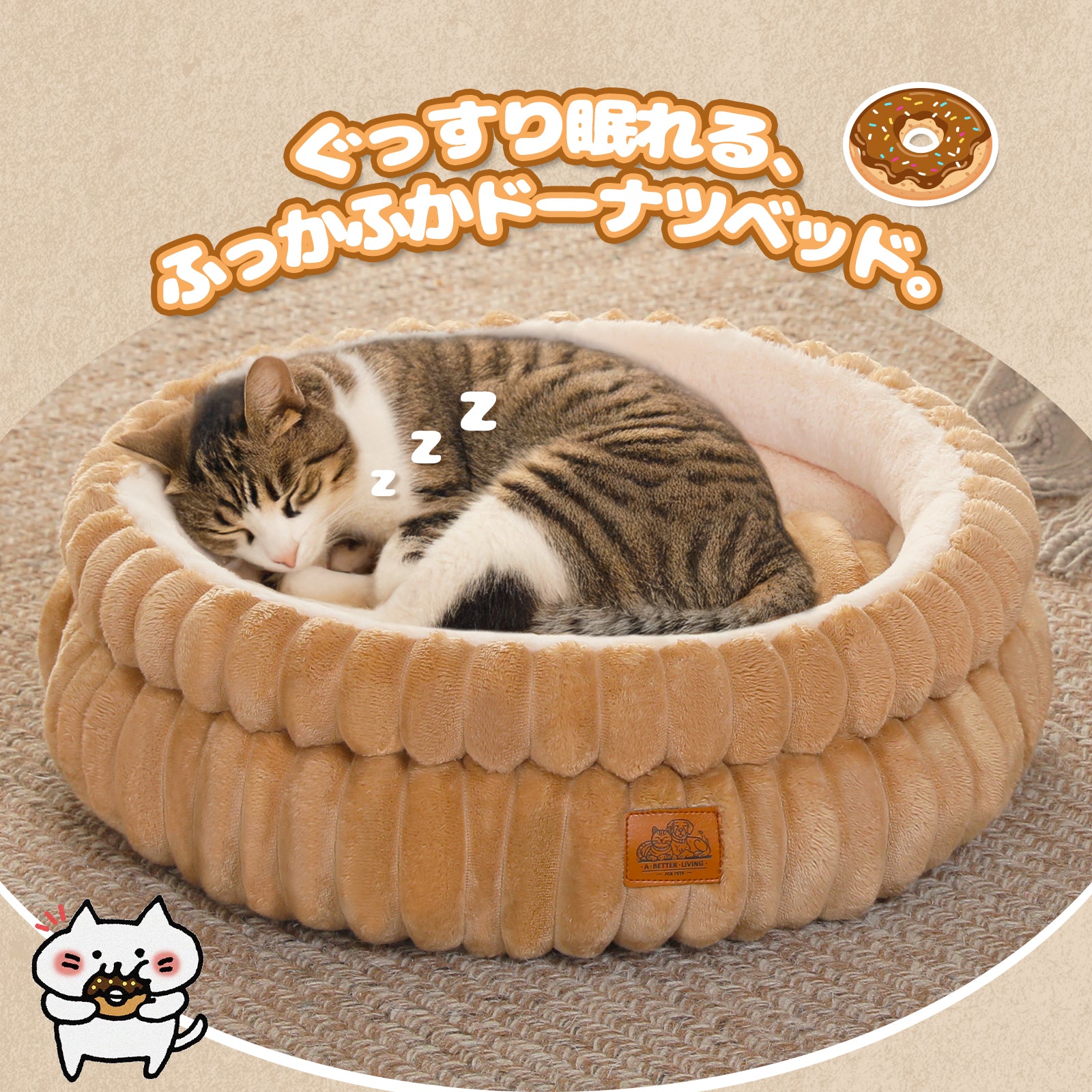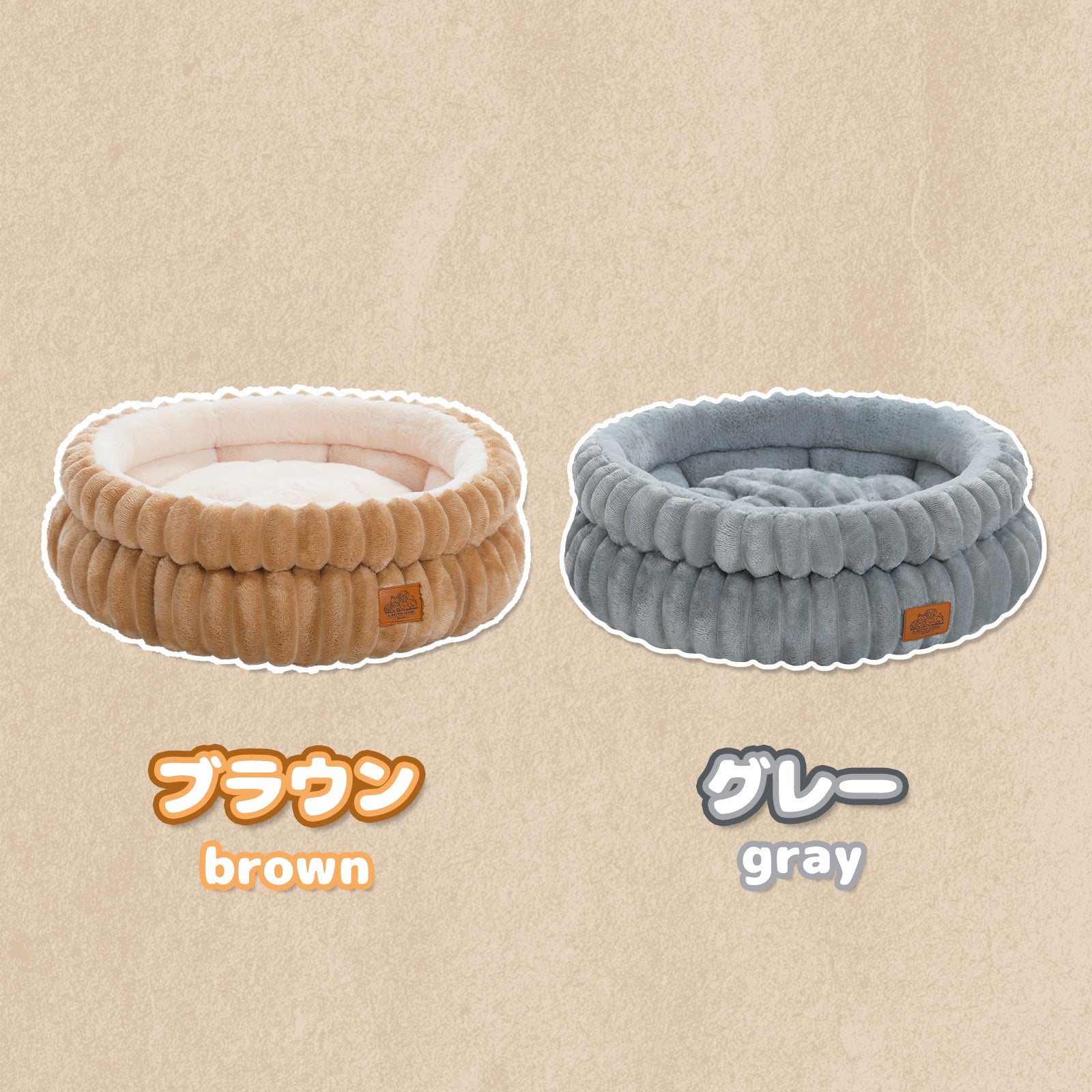 Nagaipet ペットベッド ドーナツ型 犬用 猫用 ベッド 洗える ペットクッション マット 高反発 ふわふわ 滑り止め オールシーズン 冬 小型犬 洗える ペット用ベッド 50x50x23cm ブラウン グレー