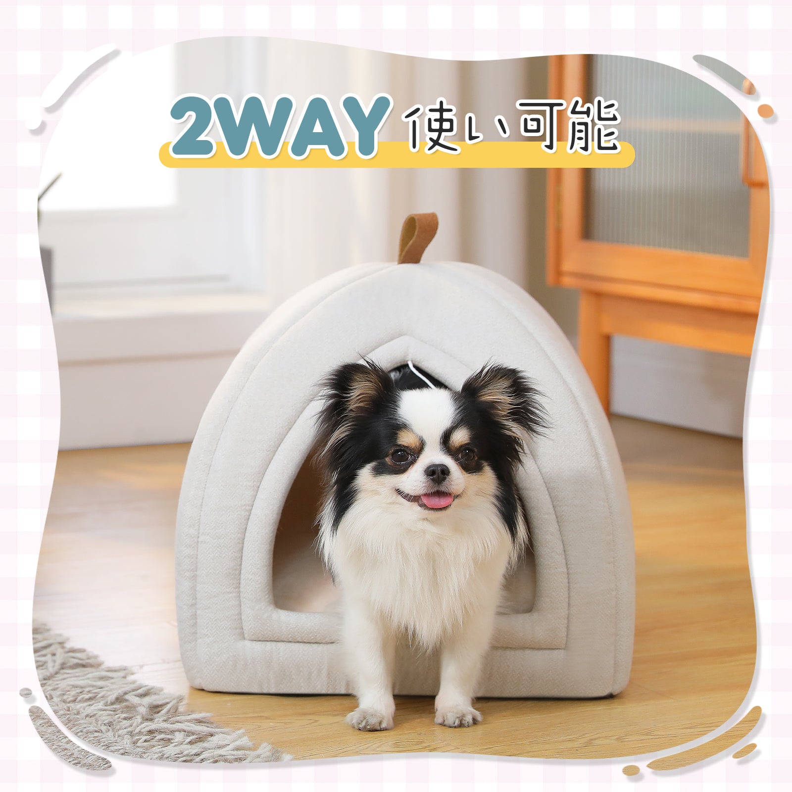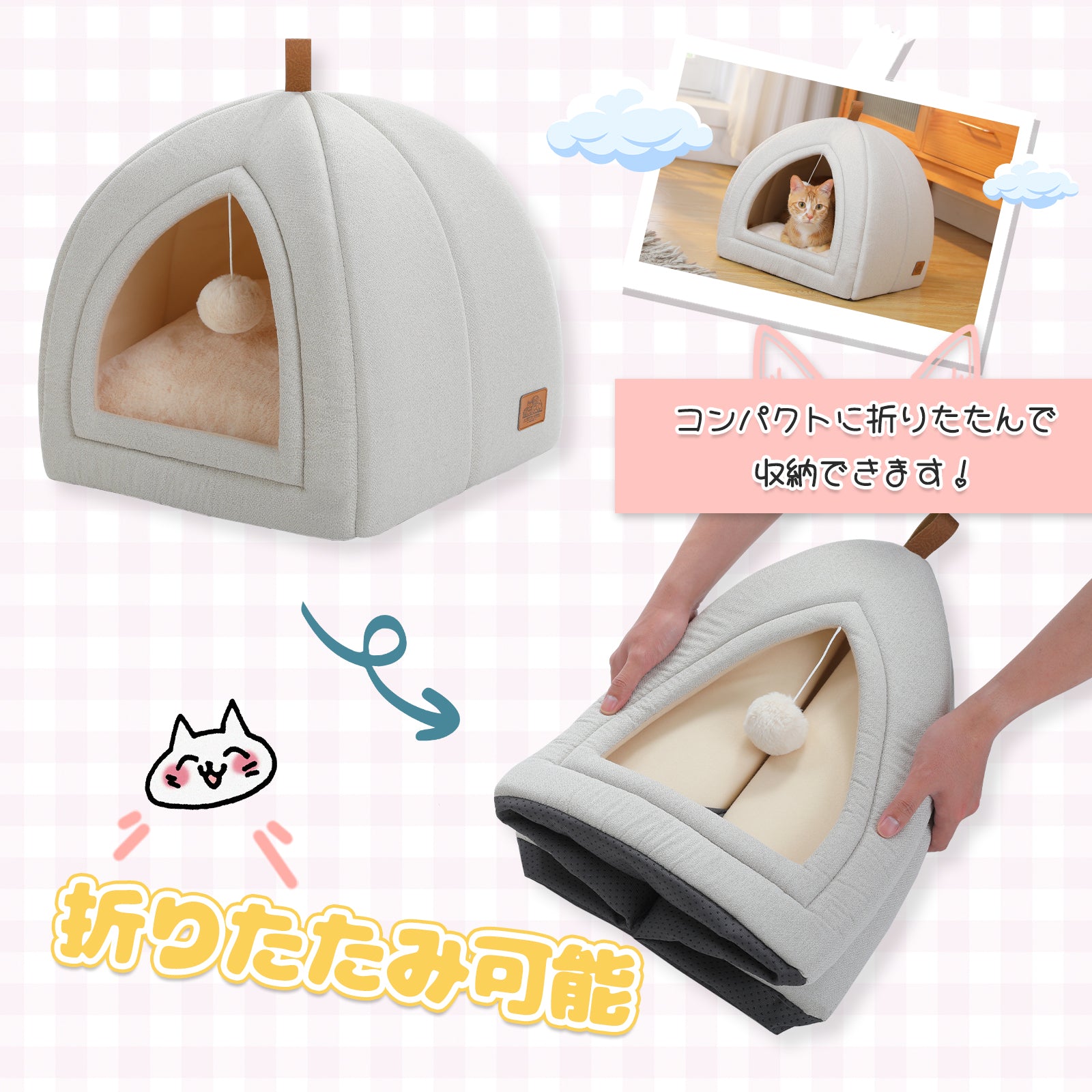 Nagaipet ペットベッド ドーム型 犬用 猫用 ベッド 洗える ペットクッション マット 高反発 ふわふわ 滑り止め オールシーズン 小型犬 洗える ペット用ベッド ベージュ グレー