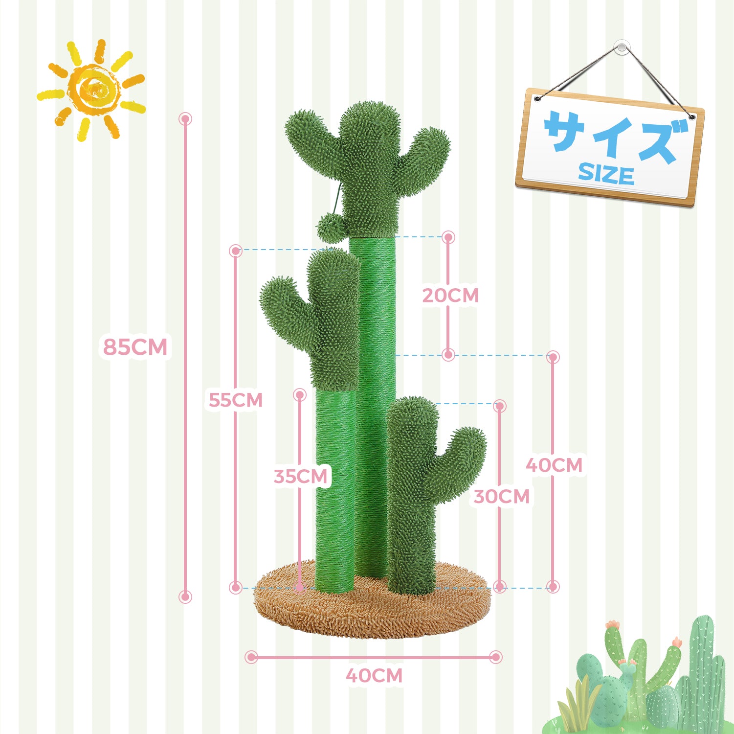 Nagaipet 猫爪とぎポール 極太 直径10cm 麻紐 サボテン バリバリ カリカリ 爪磨き 猫のおもちゃ キャットタワー 猫タワー かわいい インテリア おしゃれ 多頭飼い 省スペース 高さ85cm グリーン
